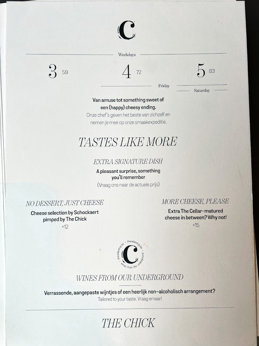 The Chick Mechelen Menu